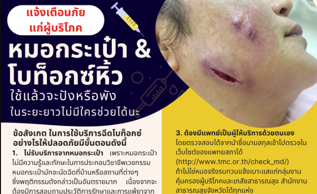 แจ้งเตือนภัย แก่ผู้บริโภค & หมอกระเป๋า โบท็อกซ์หิ้ว • ใช้แล้วจะปังหรือพัง ในระยะยาวไม่มีใครช่วยได้นะ ข้อสังเกต ในการใช้บริการฉีดโบท็อกซ์…